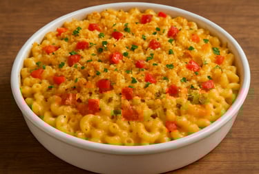 Transfer mac & cheese into a greased 9×13 baking dish or round casserole.